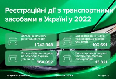 У період з 1 січня до 31 грудня 2022 року в Україні провели 1 743 348 реєстраційних дій з транспортними засобами.