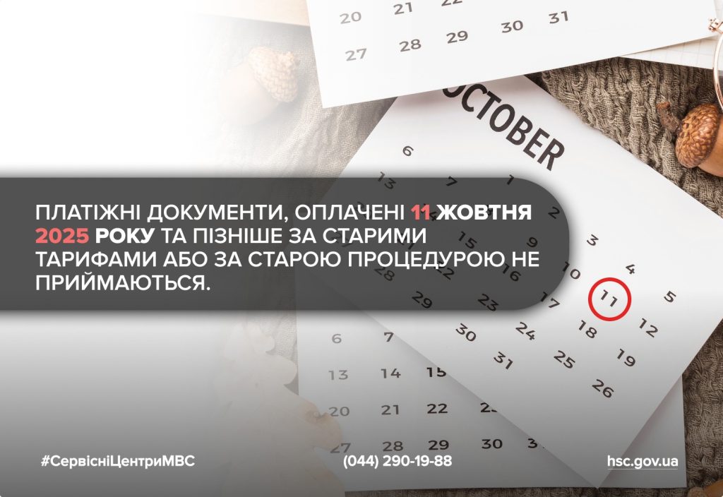 Звертаємо увагу: платіжні документи, оплачені 11 жовтня 2025 року та пізніше за старими тарифами або за старою процедурою не приймаються. У таких випадках потрібно повторно провести оплату за оновленими правилами.