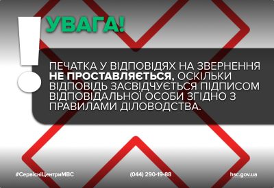 Увага! Печатка у відповідях на звернення не проставляється, оскільки відповідь засвідчується тільки підписом відповідальної особи.