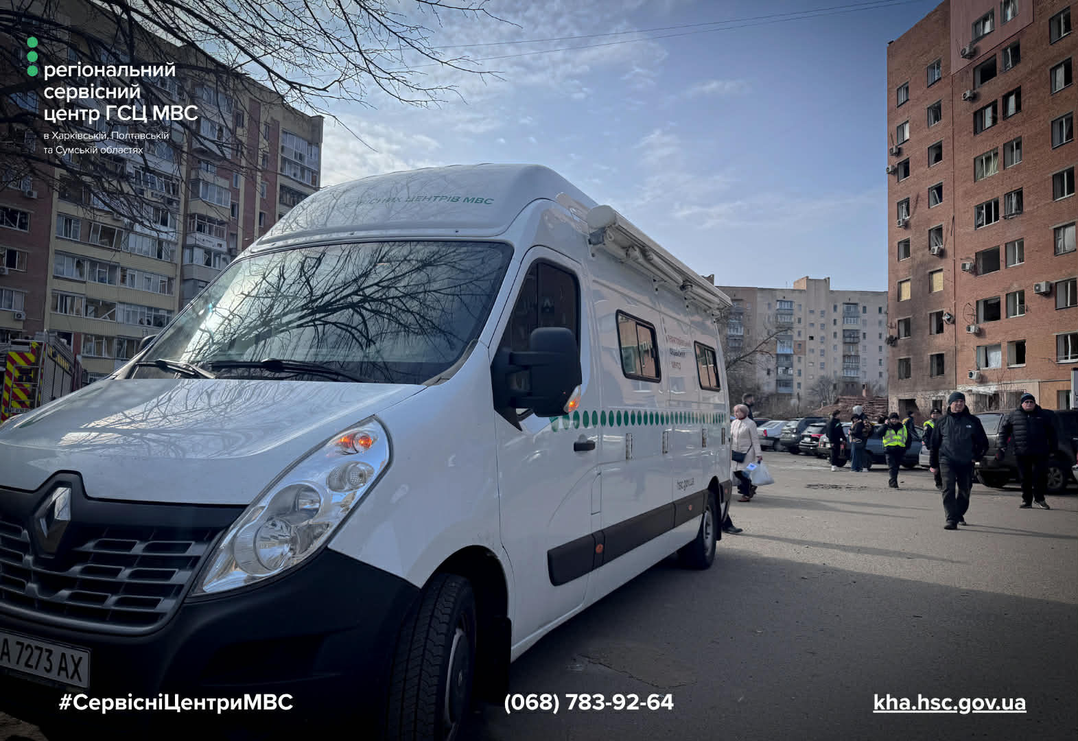 У Полтаві мобільний сервісний центр МВС працював на місцях, де внаслідок ворожих обстрілів було пошкоджено житлові будинки та майно громадян. Адміністратори консультували постраждалих мешканців, роз’яснювали порядок відновлення водійських документів і допомагали оформити необхідні послуги безпосередньо на місці.