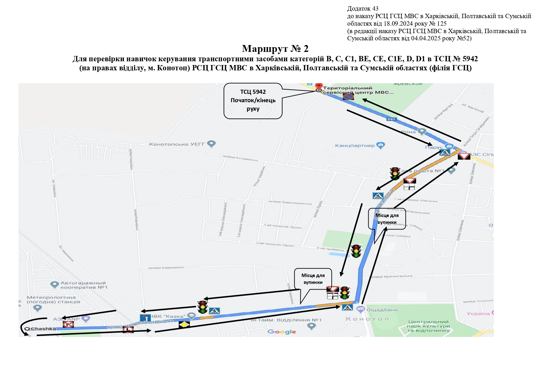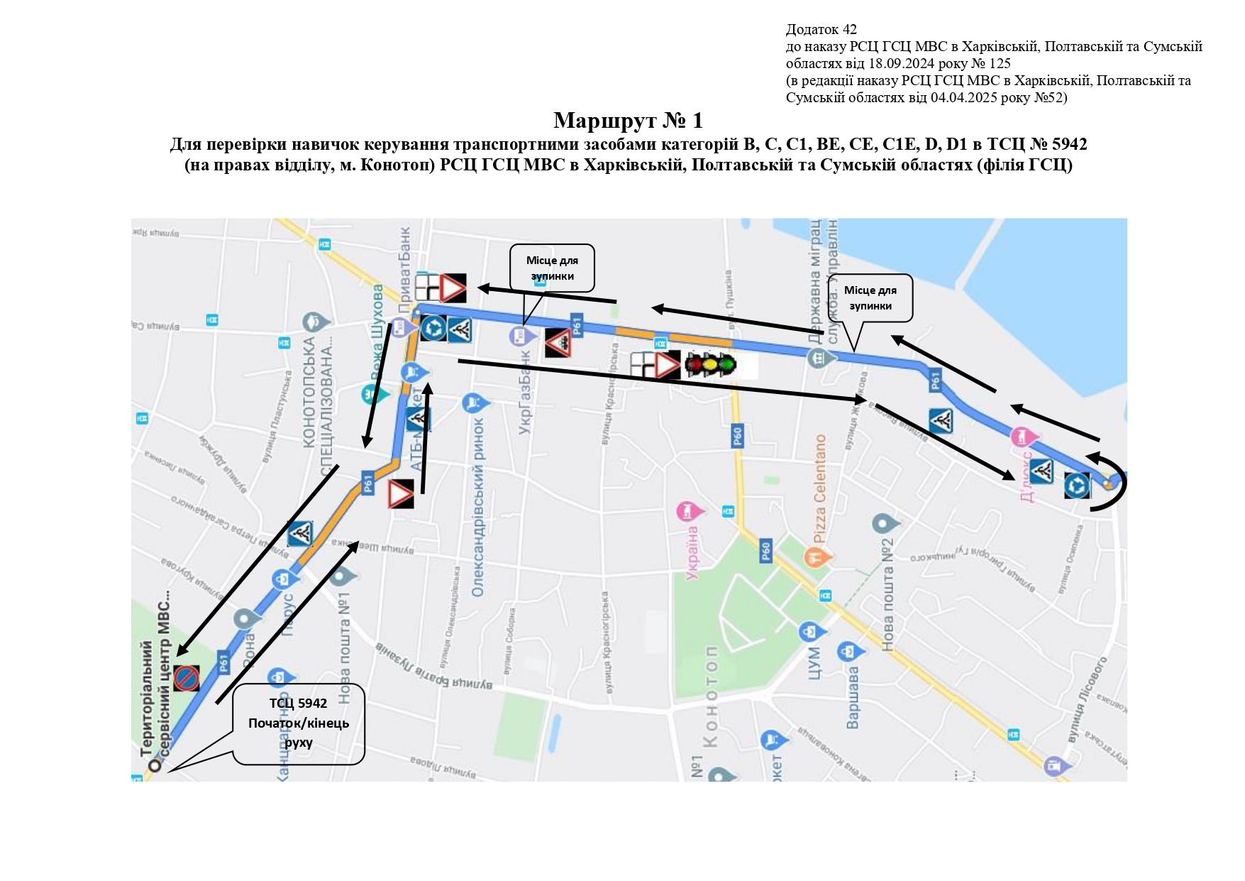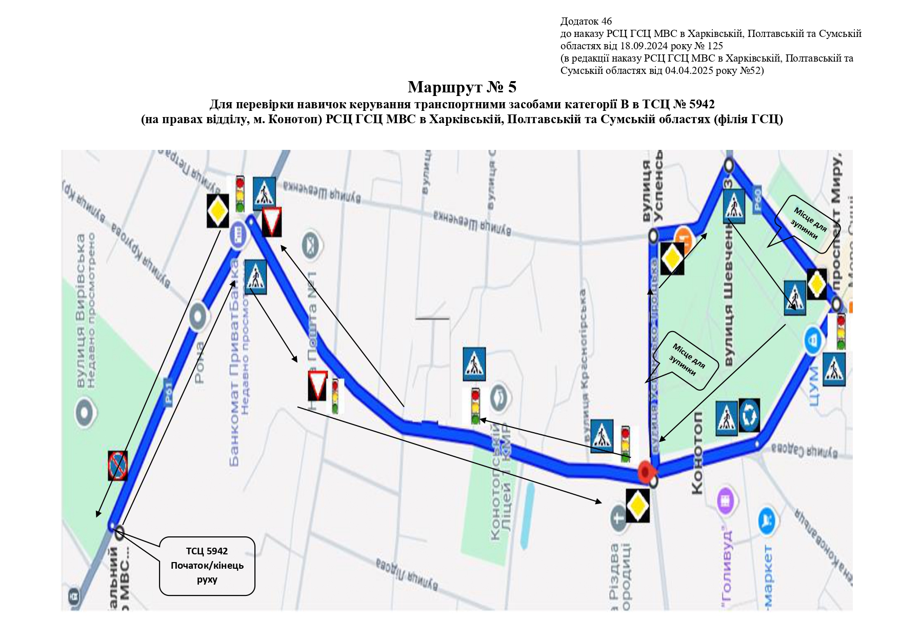 Маршрути для складання практичних іспитів розроблено з урахуванням: