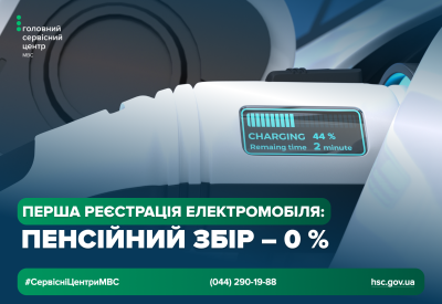 Під час першої державної реєстрації транспортного засобу законодавством передбачено кілька обов’язкових платежів, які сплачуються на різних етапах. Існують платежі, які сплачуються до візиту в ТСЦ МВС – це мито та податок на додану вартість (ПДВ). Працівники сервісних підрозділів не здійснюють адміністрування цих платежів, не беруть участі в їх нарахуванні та не контролюють факт їх сплати. Водночас є платежі, які сплачуються безпосередньо у сервісному центрі МВС. До них належать: вартість послуг із проведення реєстраційних дій, бланкової продукції та металевих пластин номерних знаків. Також у сервісному центрі МВС адміністратори можуть прорахувати суму збору на обов’язкове державне пенсійне страхування. До ТСЦ МВС відвідувачу необхідно обов’язково надати платіжний документ, що підтверджує сплату цього збору. За відсутності платіжки реєстраційні дії не проводяться. Сплату збору на обов’язкове державне пенсійне страхування працівники сервісного центру МВС перевіряють перед проведенням реєстрації транспортного засобу. Перед першою державною реєстрацією транспортного засобу в сервісному центрі МВС власнику необхідно сплатити визначені законодавством обов’язкові платежі. До них належать мито, податок на додану вартість (ПДВ) та збір на обов’язкове державне пенсійне страхування. Збір на обов’язкове державне пенсійне страхування залежить від вартості автомобіля. Виняток становлять легкові авто, оснащені виключно електричними двигунами – для них пенсійний збір не сплачується. Вартість транспортного засобу визначається відповідно до договору купівлі-продажу, договору міни, довідки митних органів, акта експертної оцінки або інших документів, що підтверджують ціну автомобіля, але не нижче вартості, зазначеної у митній декларації. Розмір збору на обов’язкове державне пенсійне страхування на 1 січня 2025 року становить: 3 % – якщо вартість легкового автомобіля не перевищує 165 розмірів прожиткового мінімуму для працездатних осіб, установленого законом; 4 % – якщо вартість перевищує 165, але не перевищує 290 таких розмірів; 5 % – якщо вартість перевищує 290 розмірів прожиткового мінімуму для працездатних осіб. Таким чином, станом на 1 січня 2026 року під час першої реєстрації електромобіля в сервісному центрі МВС нічого не змінюється – ставка збору на обов’язкове державне пенсійне страхування для таких транспортних засобів залишається 0 %. Головний сервісний центр МВС звертає увагу громадян, що ставки мита та збору на обов’язкове державне пенсійне страхування залишаються незмінними. Радимо нашим відвідувачам заздалегідь ознайомлюватися з актуальними нормами законодавства та планувати свій час на придбання та першу реєстрацію транспортних засобів. Консультацію щодо послуг сервісних центрів МВС можна отримати за телефоном (044) 290-19-88 або на сторінках Головного сервісного центру МВС в Фейсбук та Інстаграм. Відповіді на найпоширеніші питання та корисну інформацію черпайте на сайті.