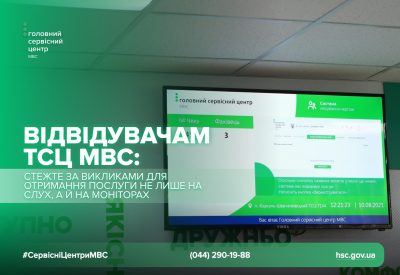 Відвідувачам сервісних центрів МВС важливо стежити не лише за голосовими оголошеннями, а й за інформацією на моніторах. Головний сервісний центр МВС нагадує відвідувачам: запрошення до робочого місця для отримання послуги здійснюється не лише голосовим способом, а й через візуальні повідомлення на моніторах. Такі правила визначені Порядком організації надання послуг сервісними центрами МВС, затвердженим наказом МВС № 777 від 5 листопада 2020 року (зі змінами). Як здійснюється виклик відвідувачів Суб’єкт звернення запрошується адміністратором або системою управління електронним записом одночасно двома способами: звуковим повідомленням/сповіщенням, візуальним повідомленням на моніторах у залі очікування. Запрошення здійснюється в порядку черговості відповідно до часу, зазначеному в Е-записі. Чому важливо слідкувати за інформаційними табло У приміщеннях сервісних центрів МВС встановлені спеціальні монітори. На них відображаються: поточна дата й час, номер запису відвідувача, номер робочого місця адміністратора, який надаватиме послугу. Це дозволяє організувати процес надання послуг зручно, комфортно та без зайвого скупчення людей. Нагадуємо: записи, сформовані онлайн, містять 4 цифри, а сформовані через термінал у сервісному центрі МВС – складаються з 2 цифр. Де саме слід чекати свого виклику При зверненні до сервісного центру МВС рекомендуємо одразу підходити до стійки рецепції, щоб уточнити: у якій частині залу чи на якому поверсі надається необхідна вам послуга, та інші уточнюючі запитання. Це важливо, адже місце очікування може відрізнятися залежно від виду послуги: реєстрація/перереєстрація транспортного засобу чи видача та обмін посвідчення водія (включно з екзаменацією). Саме в тій зоні вам потрібно слідкувати за моніторами та звуковим сповіщенням виклику до адміністратора. Порядок обслуговування Від початку запрошення і до завершення прийому відвідувача обслуговує один і той самий адміністратор сервісного центру МВС, за винятком випадків, коли це неможливо через специфіку послуги або інші ситуації. Якщо відвідувач не підійшов Процедура виклику відвідувача в наказі МВС № 777 визначена чітко. Усього система може здійснити три виклики з інтервалом в одну хвилину. Якщо клієнт не підійшов протягом 1 хвилини, з моменту запрошення до робочого місця, його викликають повторно двічі з інтервалом в 1 хвилину. Якщо людина не з’явилася впродовж трьох хвилин із моменту першого запрошення до робочого місця, її номер у черзі скасовується автоматично. У такому разі для отримання послуги необхідно знову зареєструватися в черзі. Сповіщення під час повітряної тривоги Для належного інформування відвідувачів у сервісних центрах МВС працює система цифрового звукового сповіщення про настання чи відбій повітряної тривоги. Почувши сигнал оповіщення, усі відвідувачі повинні негайно залишити приміщення сервісного центру МВС і прослідувати до найближчого укриття або безпечного місця. Актуальну карту укриттів можна знайти на інформаційній стійці біля рецепції. Головний сервісний центр МВС закликає відвідувачів звертати увагу не лише на голосові оголошення, а й на монітори в залах очікування. Це допоможе швидше орієнтуватися у власному виклику, не пропускати початок обслуговування та забезпечить комфортну й ефекти