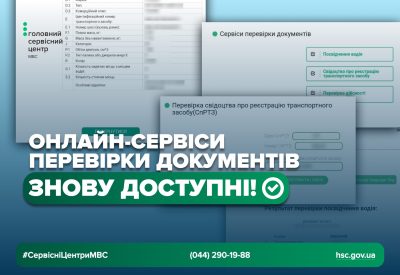 На офіційному сайті Головного сервісного центру МВС відновив роботу сервіс перевірки документів, який надає можливість громадянам у режимі онлайн перевіряти інформацію про документи, видані сервісними центрами МВС. За допомогою сервісу можна перевірити посвідчення водія, реєстраційні документи на транспортні засоби, а також номерні знаки. Окремо передбачена можливість перевірки та бронювання номерних знаків, що дозволяє заздалегідь обрати бажану комбінацію перед реєстрацією транспортного засобу. Для коректного користування сервісом необхідно дотримуватися наступних правил введення даних: Усі дані вводяться виключно українськими літерами; Серії та номери документів зазначаються великими літерами; Дата вводиться у зворотному порядку: спочатку рік, потім місяць, потім число (формат — РРРР-ММ-ДД). Наголошуємо, що некоректне введення даних може призвести до відсутності результату або відображення недостовірної інформації. Перевірка документів онлайн стане у нагоді під час купівлі або продажу транспортного засобу, перевірки дійсності документів, а також для попереднього контролю інформації перед зверненням до сервісних центрів МВС. Популярність даного сервісу — це черговий крок до розвитку цифрових державних сервісів, підвищення прозорості та зручності отримання адміністративних послуг для громадян в Україні. Консультацію щодо послуг сервісних центрів МВС можна отримати за телефоном (044) 290-19-88 або на сторінках Головного сервісного центру МВС в Фейсбук та Інстаграм. Відповіді на найпоширеніші питання та корисну інформацію черпайте на сайті.